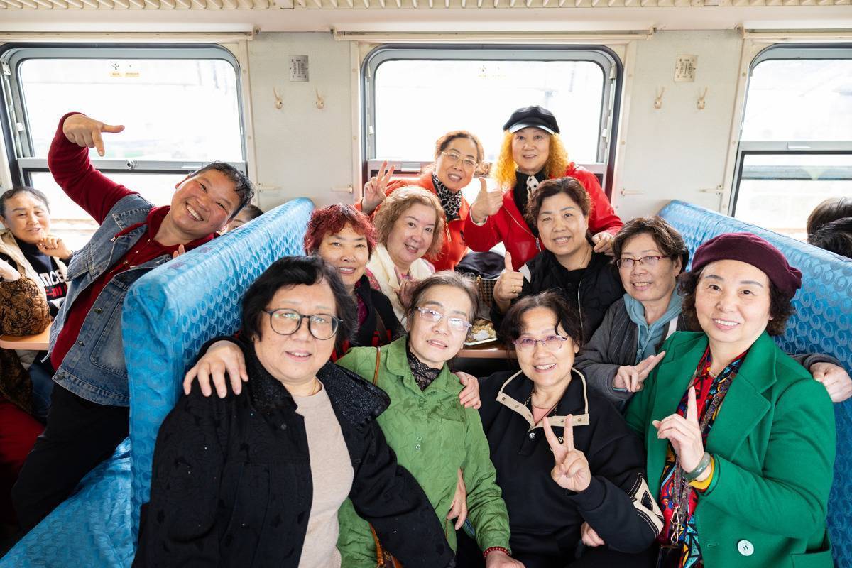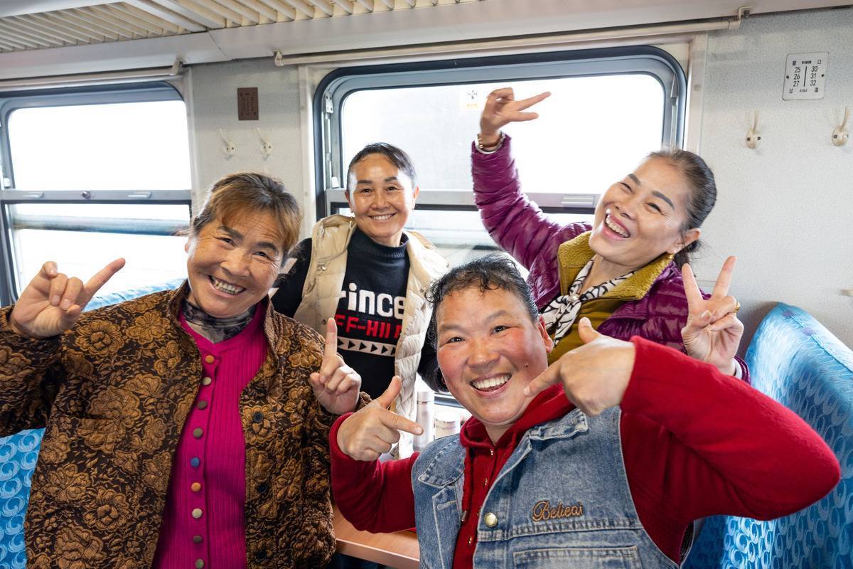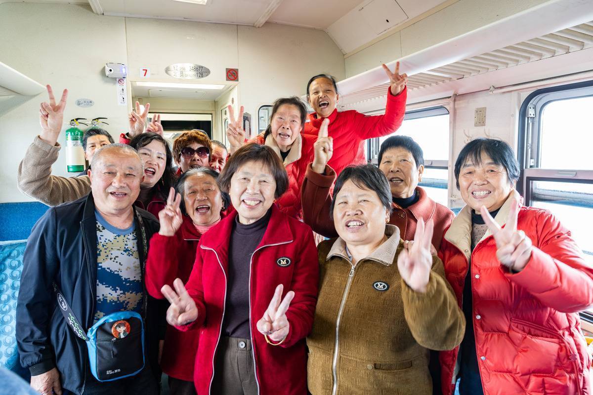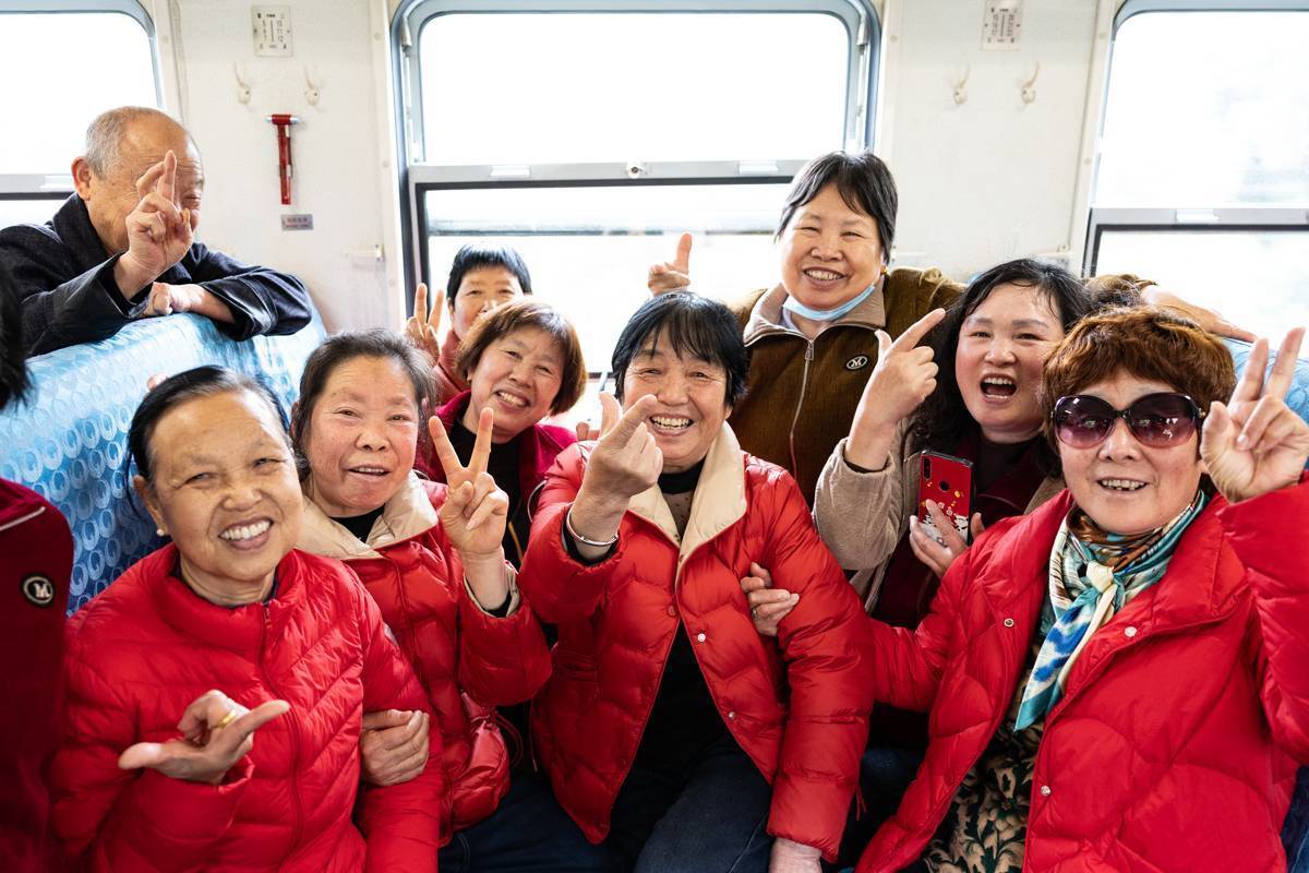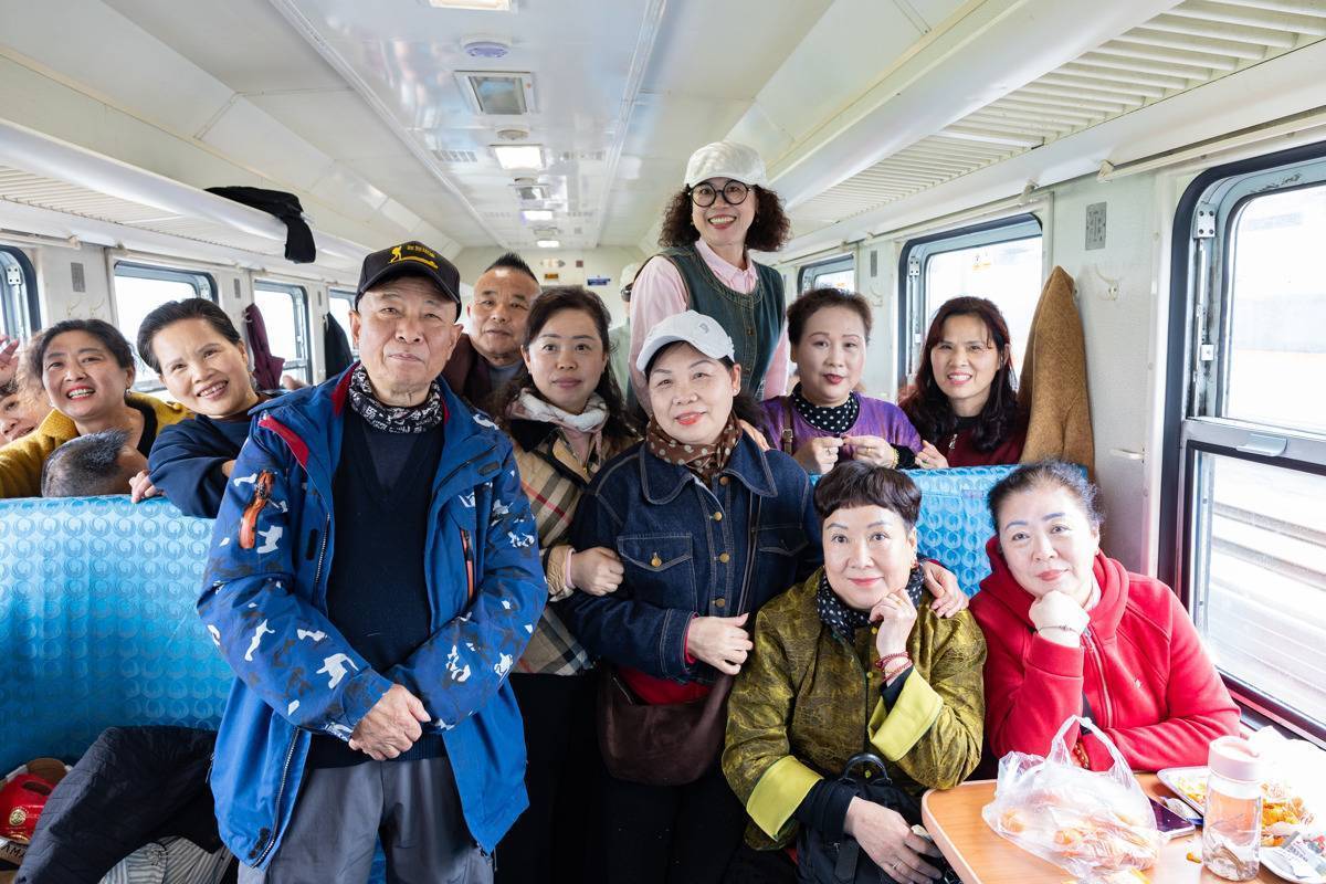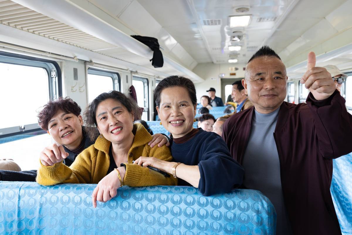图为市民游客在列车上合影留念。(湖北日报全媒记者 何宇欣 摄)